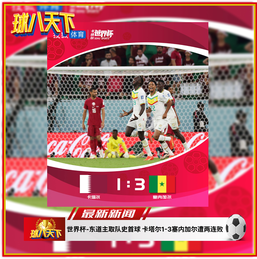 北京时间11月25日21:00,2022年世界杯A组第二轮的一场大战打响,东道主卡塔尔对战塞内加尔。上半场比赛,卡塔尔后卫胡赫禁区内解围失误送礼,迪亚得分。下半场比赛,迪德希欧头球建功,替补出战的蒙塔里帮助东道主打入一球,班巴门前推射得分。全场比赛结束,卡塔尔1-3不敌塞内加尔,遭遇小组赛两连败。