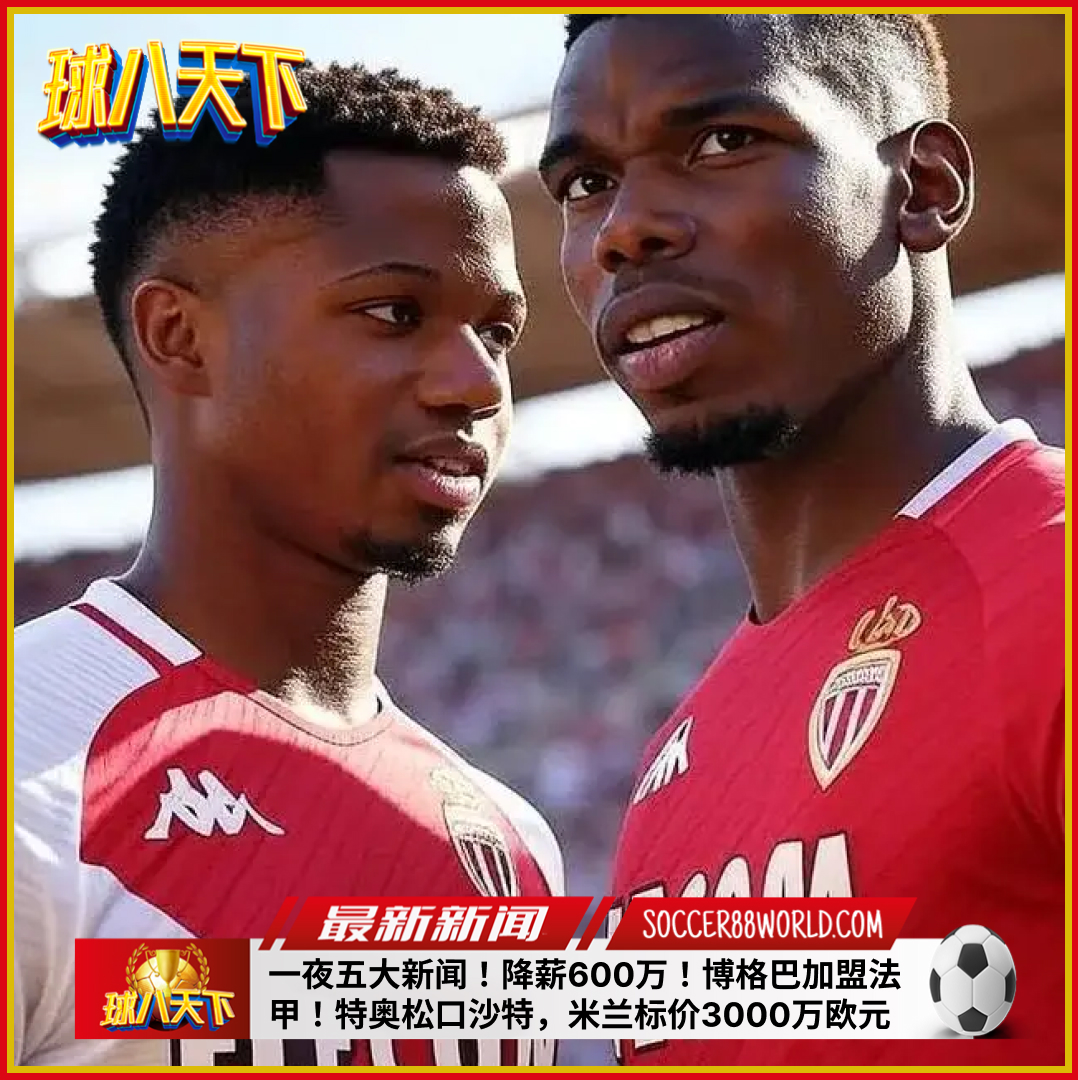 一夜五大新闻!降薪600万!博格巴加盟法甲!特奥松口沙特,米兰标价3000万欧元