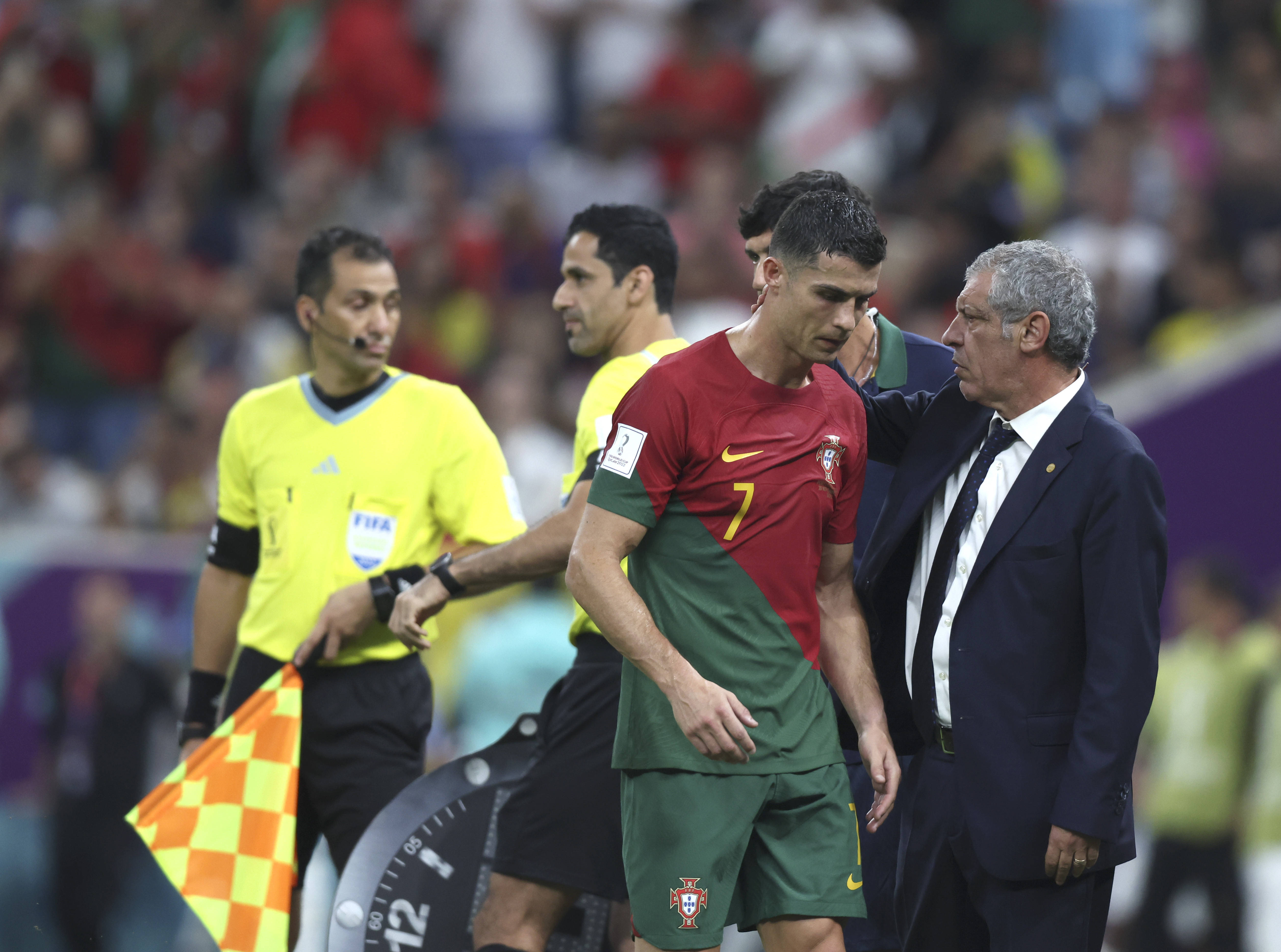 这种忍耐一直维持到本届世界杯小组赛,直到淘汰赛中,桑托斯才把C罗放在替补席上。为此,他甚至被C罗姐姐在社交媒体上辱骂。在还有两年合同的情况下,桑托斯决定终止他在葡萄牙的一切,解除他与足协的合同。
