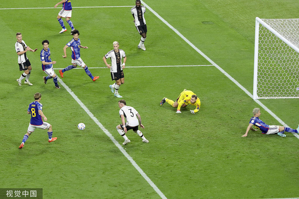 北京时间11月23日晚21时,卡塔尔世界杯E组首轮开打,德国对阵日本,上半场第33分钟,劳姆制造点球,京多安点射破门;下半场第75分钟,堂安律替补建功扳平比分,第83分钟,日本后场长传奏效,浅野拓磨反击破门,最终德国在先进一球的情况下被日本2-1逆转!德国连续两届世界杯连输韩日两支亚洲球队。