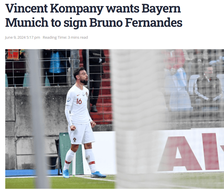 据报道,拜仁新帅孔帕尼希望球队在夏季转会窗口签下 29 岁的曼联球星布鲁诺·费尔南德斯。据西班牙媒体Fichajes报道,拜仁慕尼黑对布鲁诺·费尔南德斯很感兴趣。孔帕尼正在推动球队引进这位曼联队长,他希望这位 29 岁的葡萄牙球星在下赛季加入自己的球队。