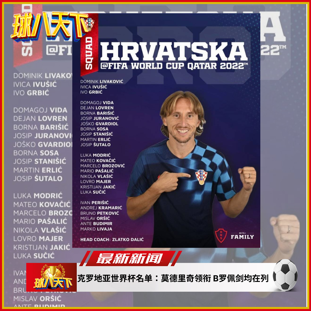 克罗地亚世界杯名单:莫德里奇领衔 B罗佩剑均在列