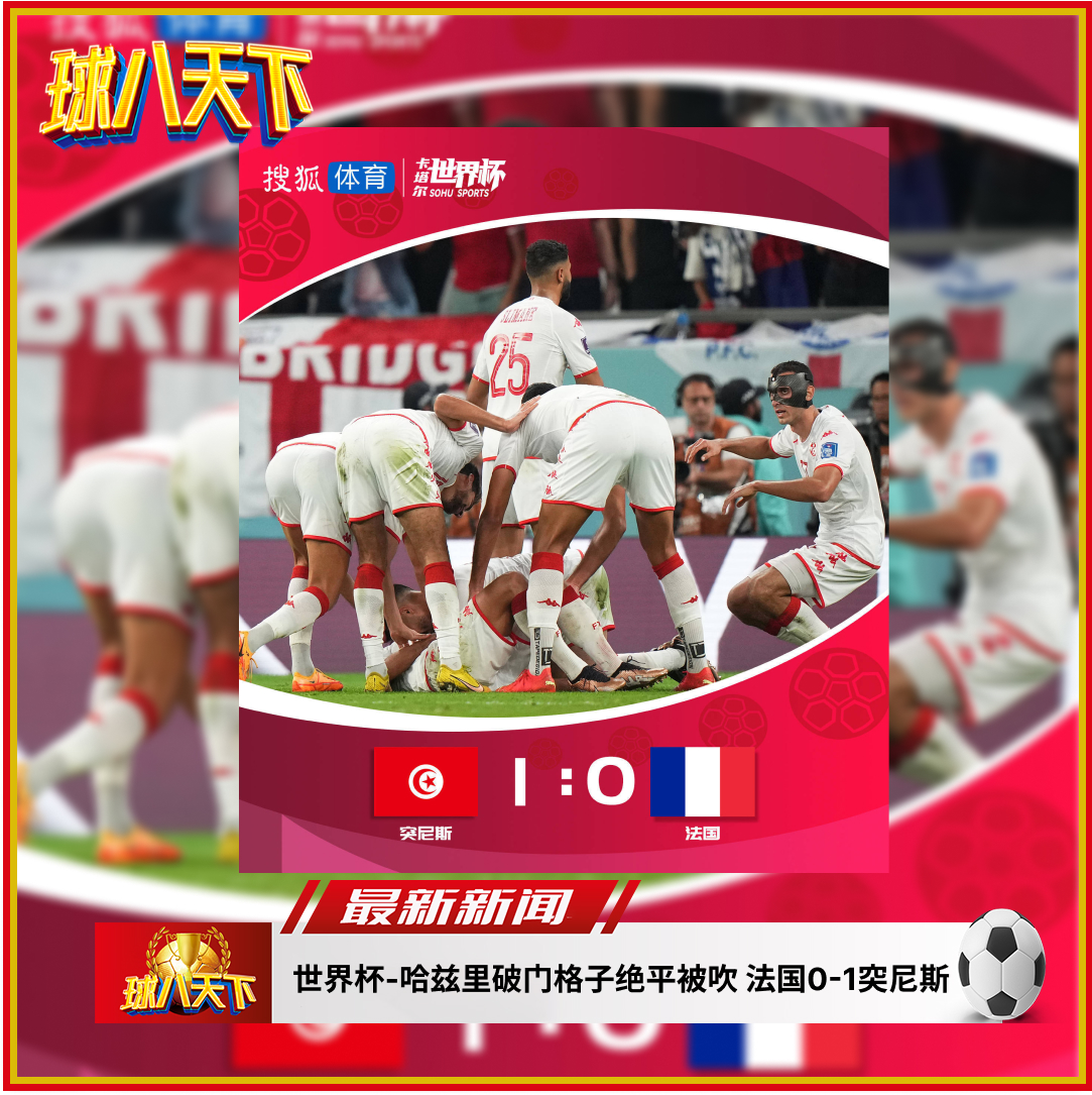 世界杯-哈兹里破门格子绝平被吹 法国0-1突尼斯