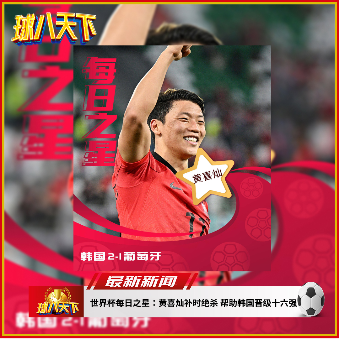 世界杯每日之星:黄喜灿补时绝杀 帮助韩国晋级十六强
