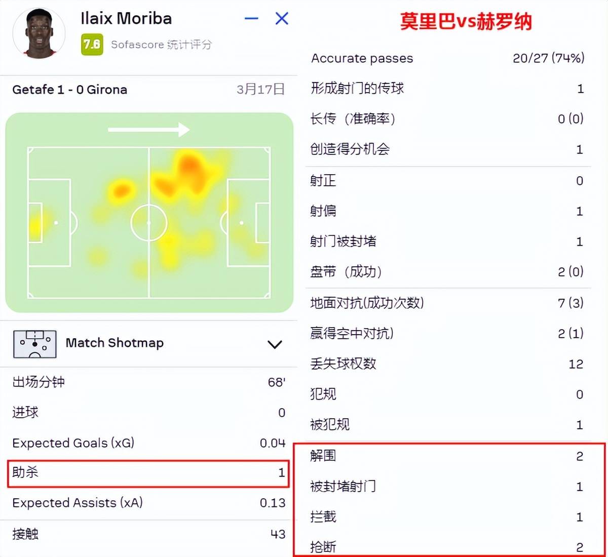 他在赫塔菲的第一次正经的亮相(去掉首秀替补出场3分钟),就在30分钟时间里,完成6次一对一对抗,赢下5次,充分证明了自己的单兵能力。